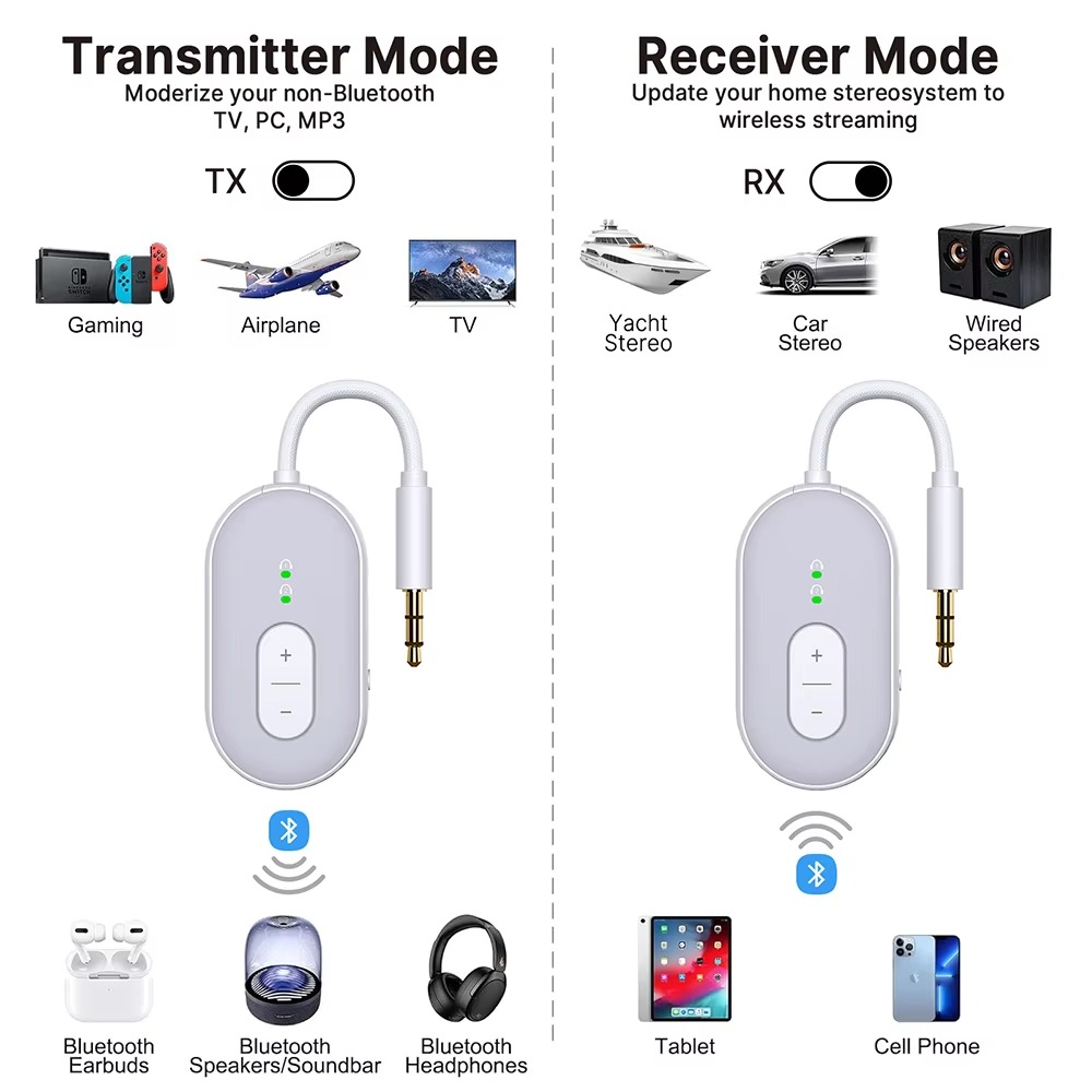 BT Transmitter Receiver Wireless Portable Audio Player Headphone Stereo Airplane Travel 2-in-1 Wireless BT Adapter BT-20